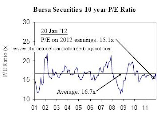 Note that P/E shown in the chart is 2012 forward/forecast PE. Current KLCI PE is at 16.6